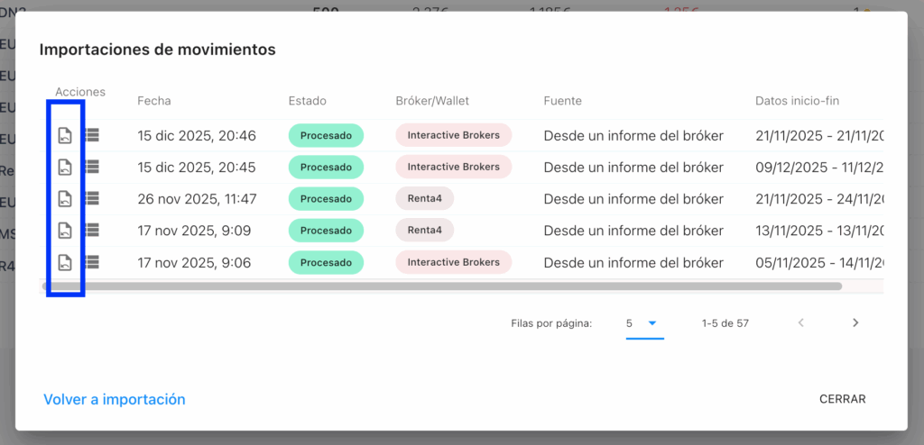 Si has hecho una importación automática, ya sea desde un archivo del broker, o usando nuestra plantilla csv genérica, puedes anularla en cualquier momento.
