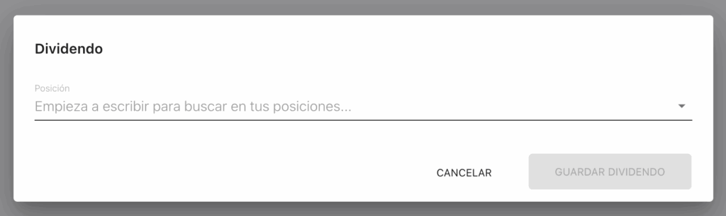 En este modal, debes elegir la posición sobre la que cobraste el dividendo.